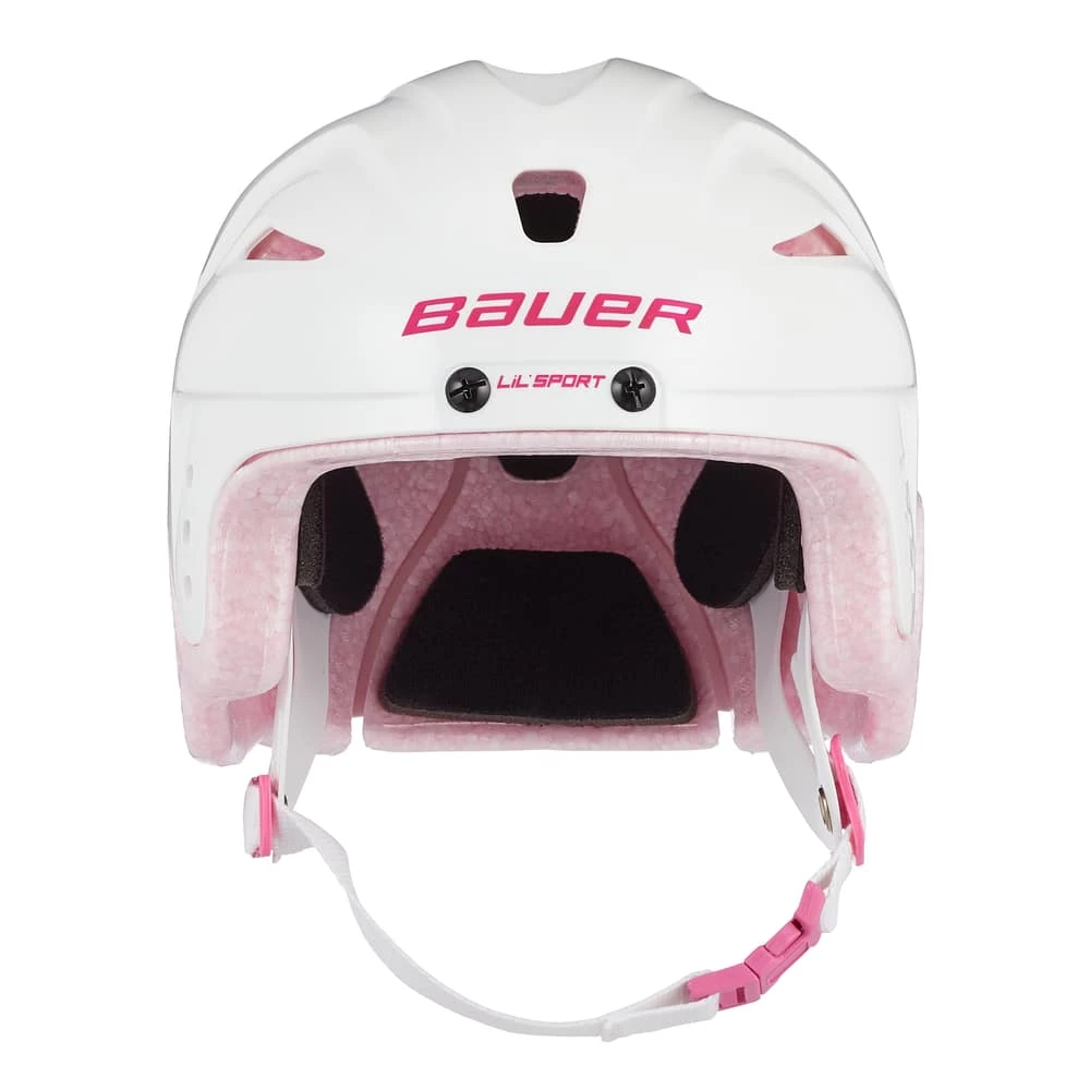 - Bauer Pink Lil’ Sports Hockey Helmet is a multi-purpose winter sport helmet, ideal for skating