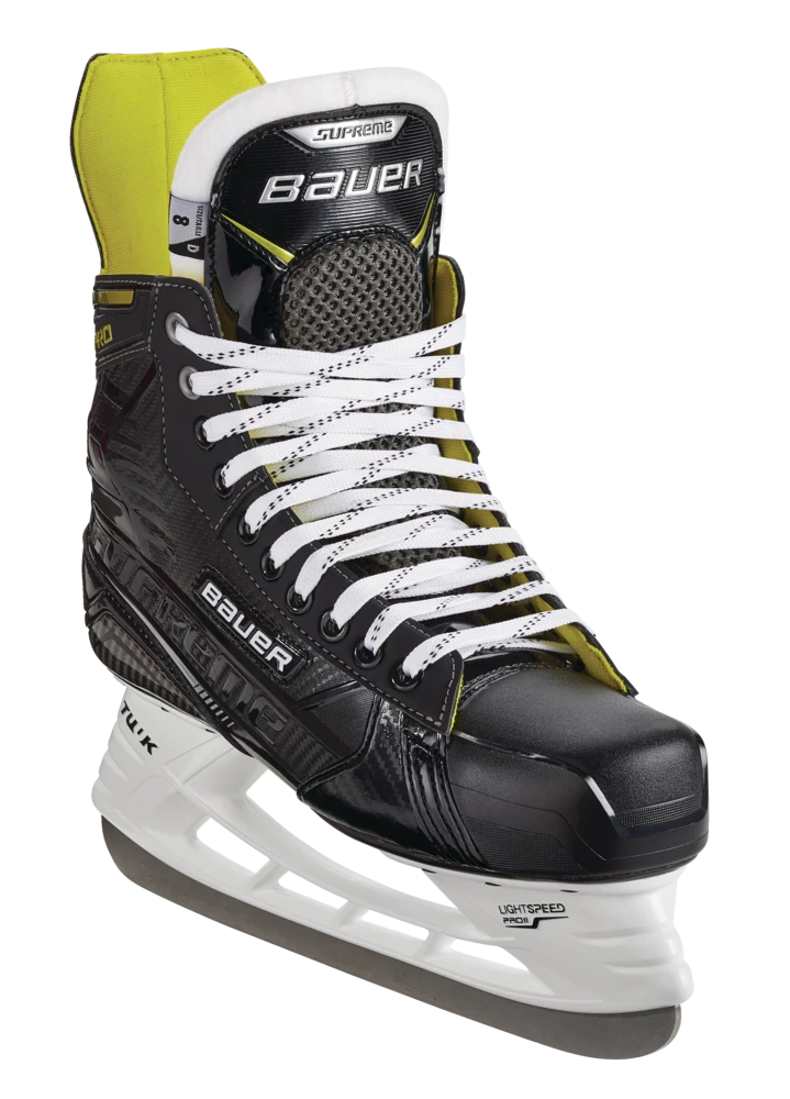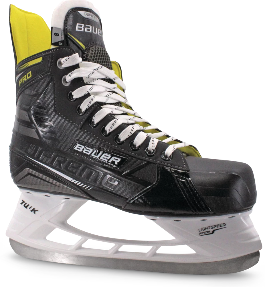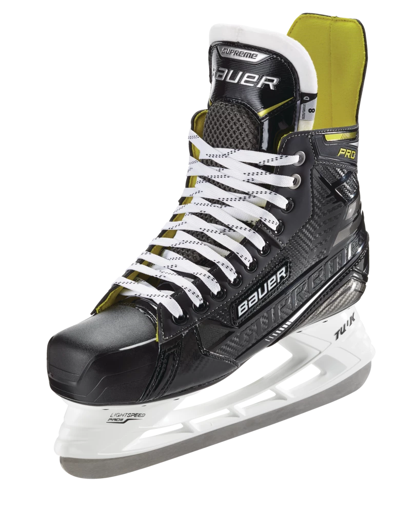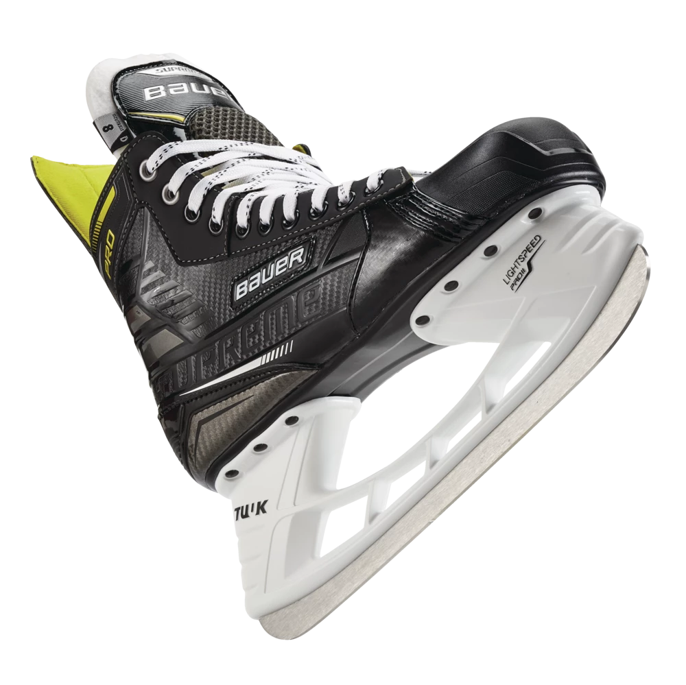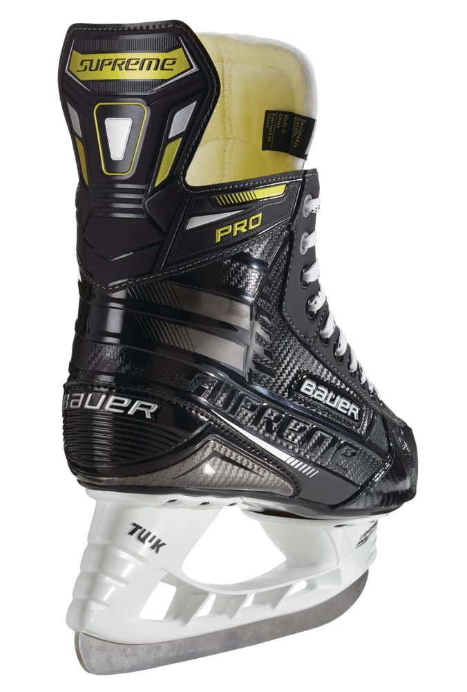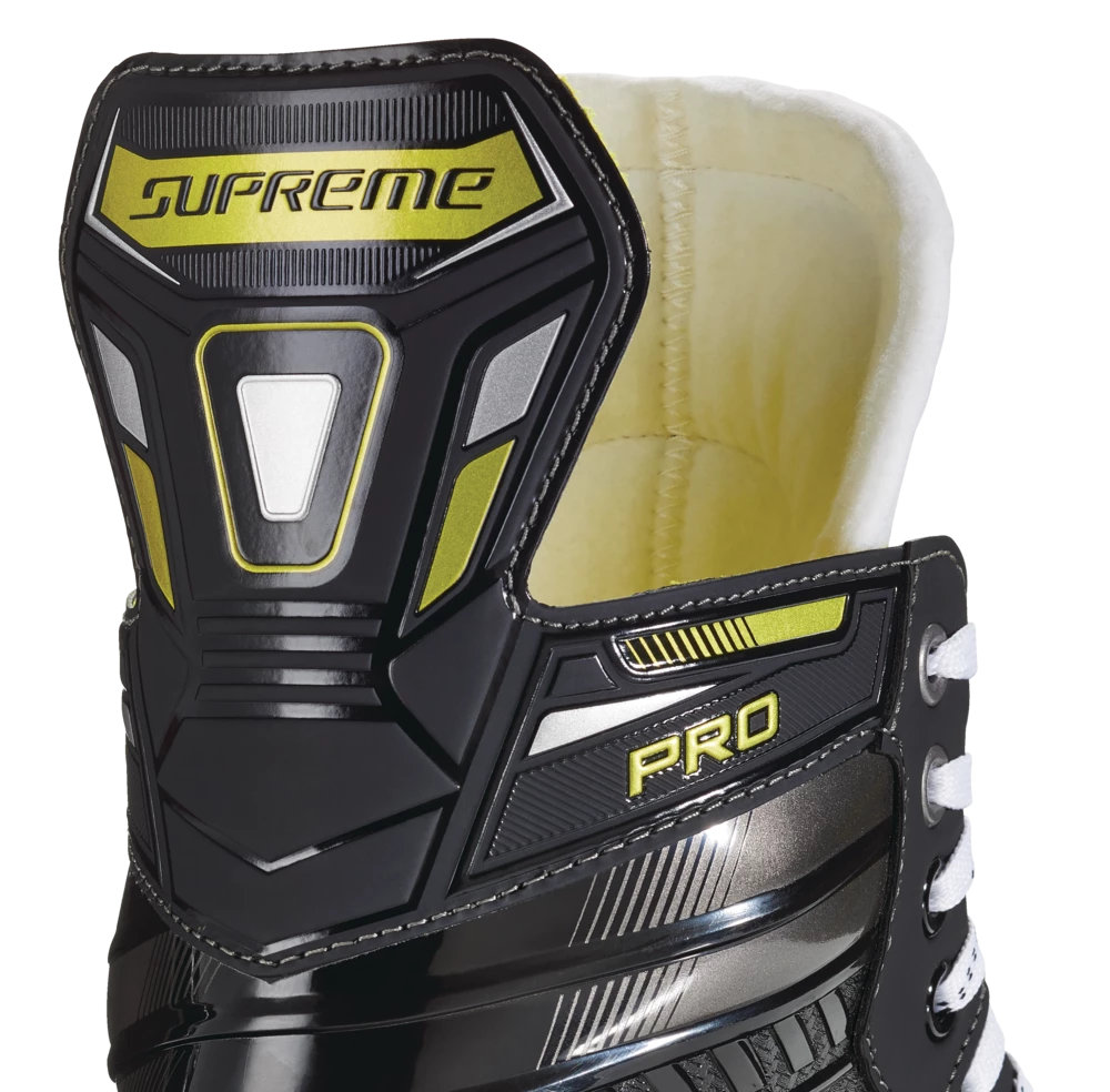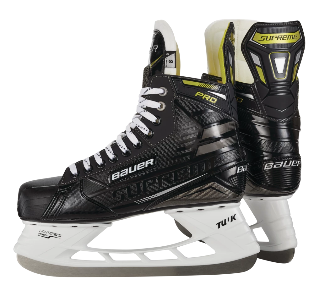 - Bauer Supreme Pro Hockey Skates feature a 3D poly carb quarter for added flex and step-in comfort