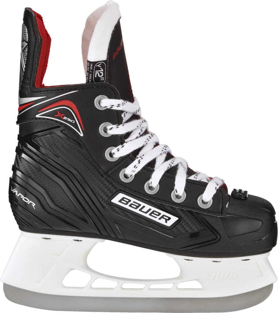 - Bauer Vapor X250 Hockey Skate features a standard fit in the toe box and a narrower V-fit in the ankle and heel