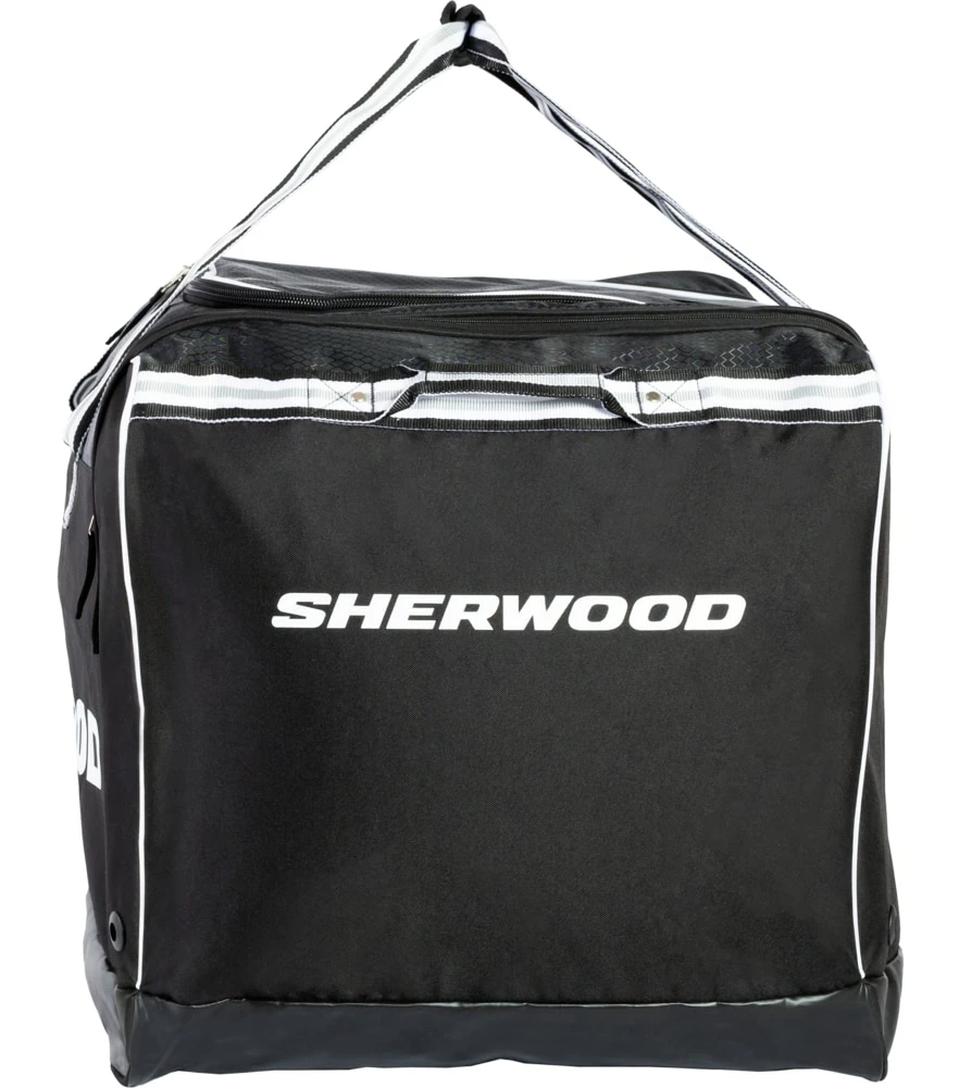 - Sherwood Goalie Hockey Bag is made of strong 600 denier polyester with a water-resistant tarpaulin bottom