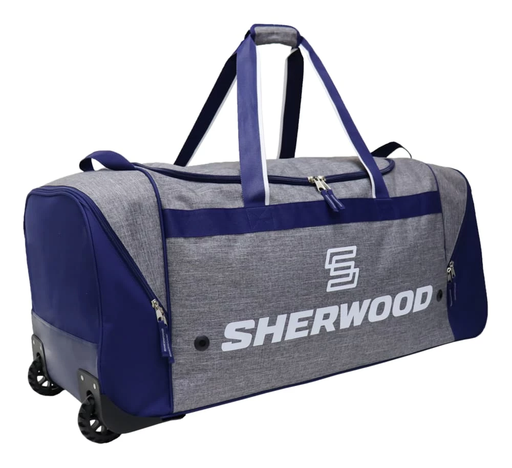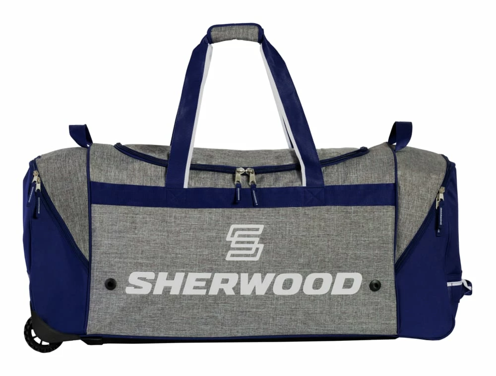 - Sherwood Heavy-Duty Wheeled Hockey Bag features 600D water-resistant polyester