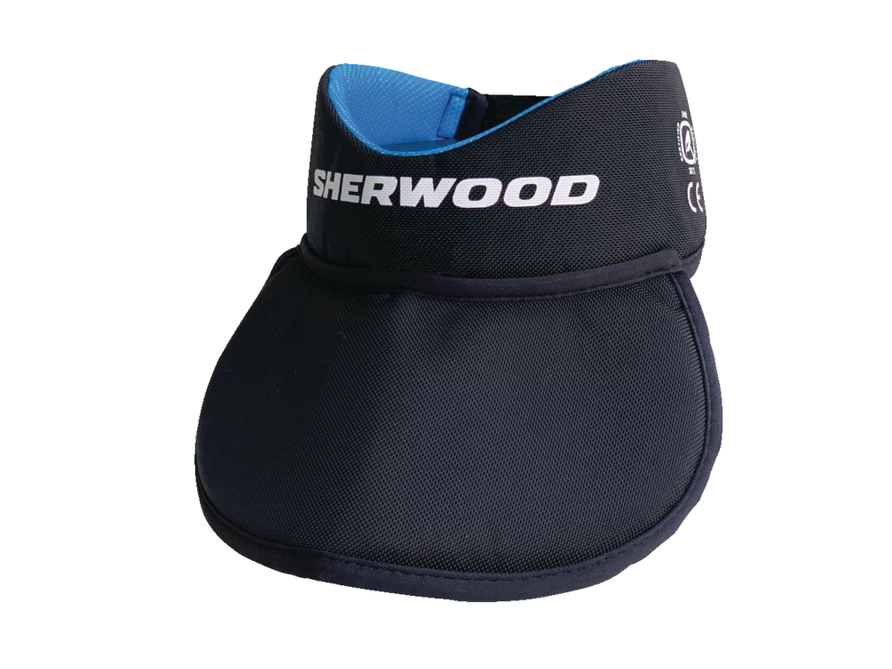 - Sherwood Hockey Neck Guard with Bib provides excellent neck, throat and top of chest cut protection